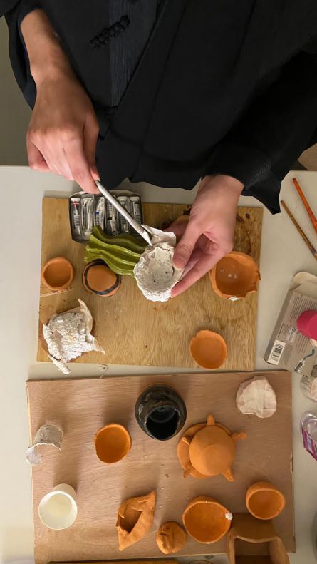 Alanood Al Thani, a Qatari fine artist, engages with emotions and expression through art. Leading an experimental approach to her practice, migrating between media, tools, and ideas; she emphasizes the simplicity of color and pattern-making. In her work, she wants to explore the mindset of a young child. Children are more imaginative and more creative because they are not faced with the worries of the adult world. They have a playful approach to whatever they are doing. She finds the usefulness of the unuseful, as she explores the discarded material and finds their potential. She engages the viewer with her work by sparking their curiosity to use their sense of touch.