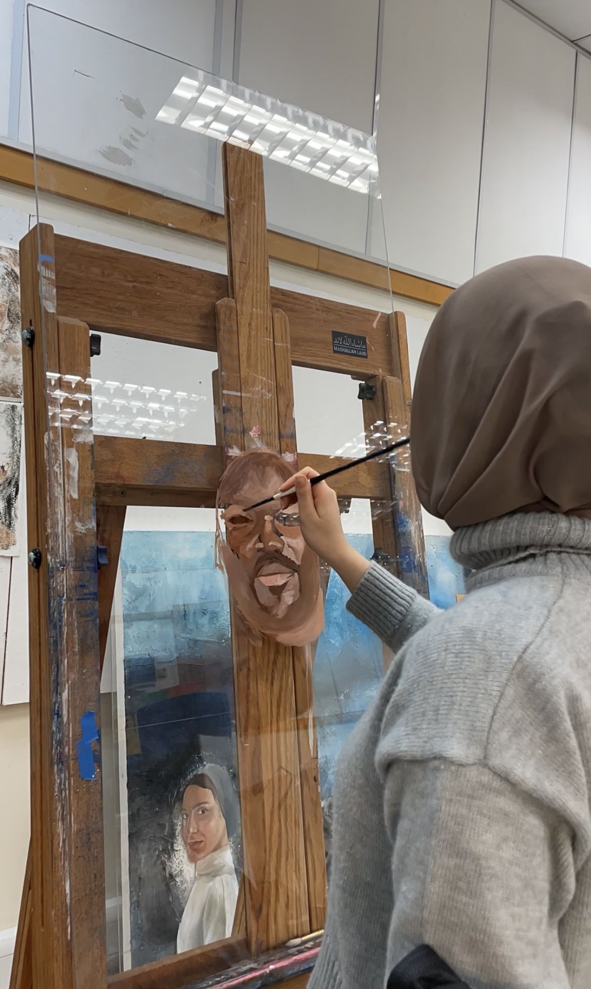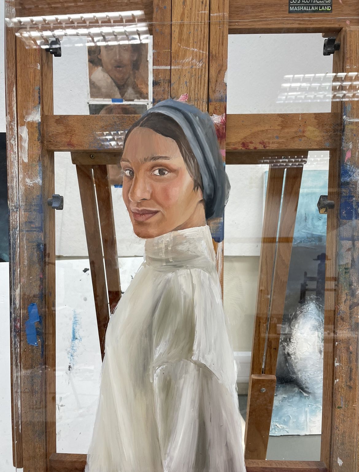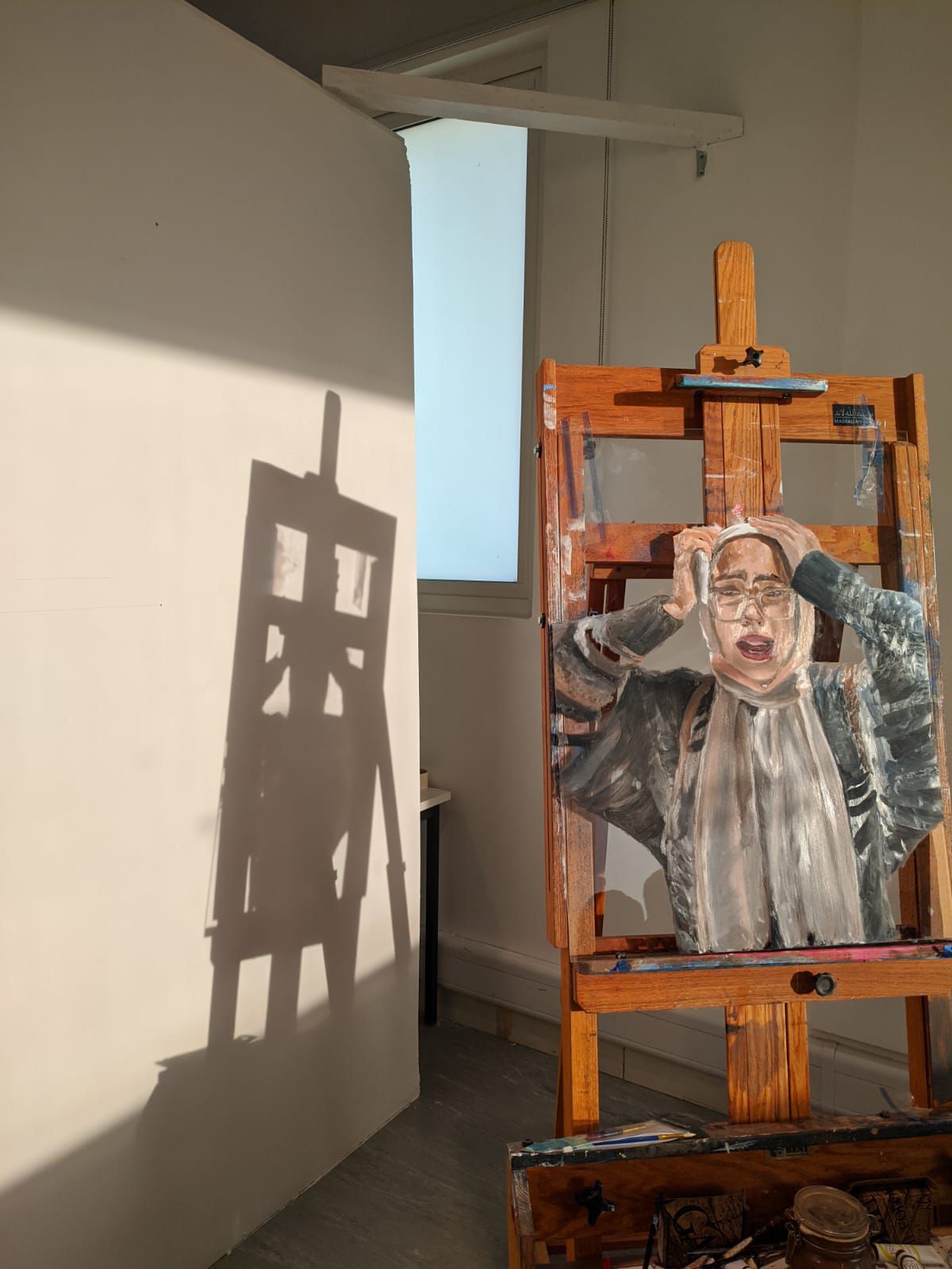 My work is formed through 3 series of portraits and are made using oil paint on clear acrylic boards, voices from my interviews with the subjects was used to create an ambience with the works and the words that stood out the most were carved onto the acrylic boards to be projected as shadows behind the paintings using a ring light.